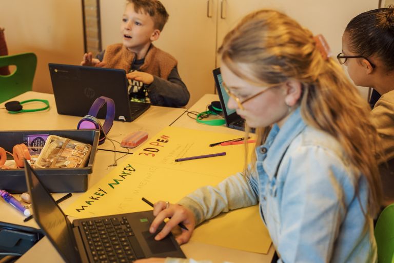 Kinderen werken zowel individueel als in groepen aan onderzoek, opdrachten en presentaties. Ze stellen vragen, zoeken informatie, trekken conclusies en delen wat ze hebben geleerd.